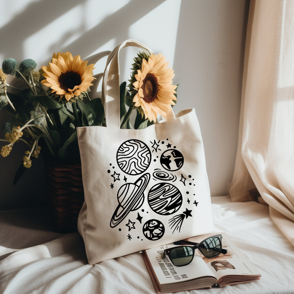 Take your style out of this world with our celestial space design tote bag! Featuring a stunning design of stars and galaxies, this tote bag is perfect for anyone who loves to add a touch of mystery and wonder to their everyday look.