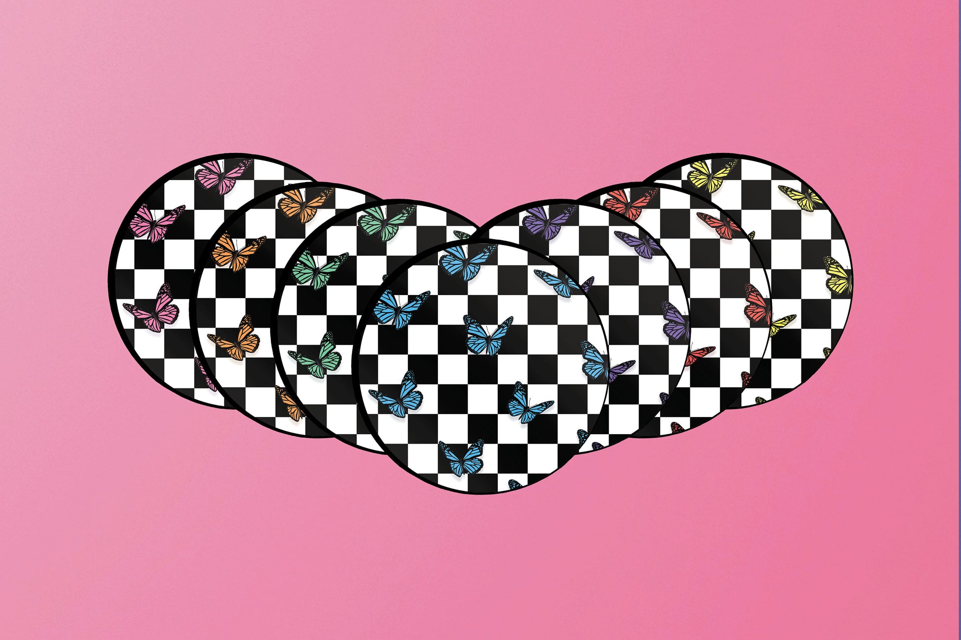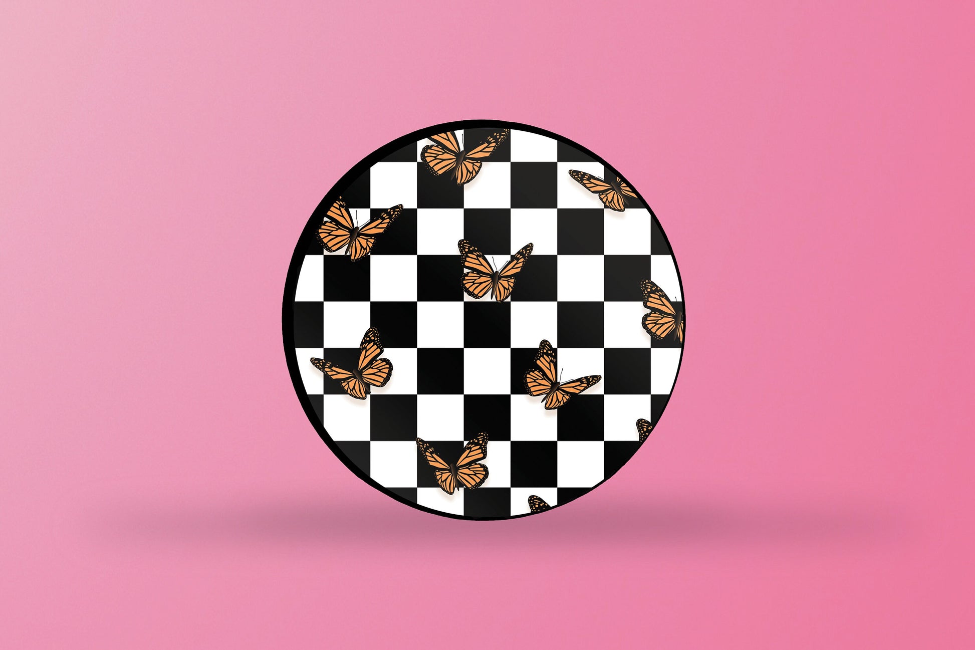 Introducing our stylish and functional adhesive phone folding grip with a black checked background and beautifully detailed butterflies. Available in a range of colours including pink, purple, blue, and yellow, this grip is a perfect accessory for anyone who loves nature-inspired designs. The butterflies add a touch of whimsy to your phone, while the grip ensures a secure hold on your device, making it easier to take photos, watch videos, or text with one hand.