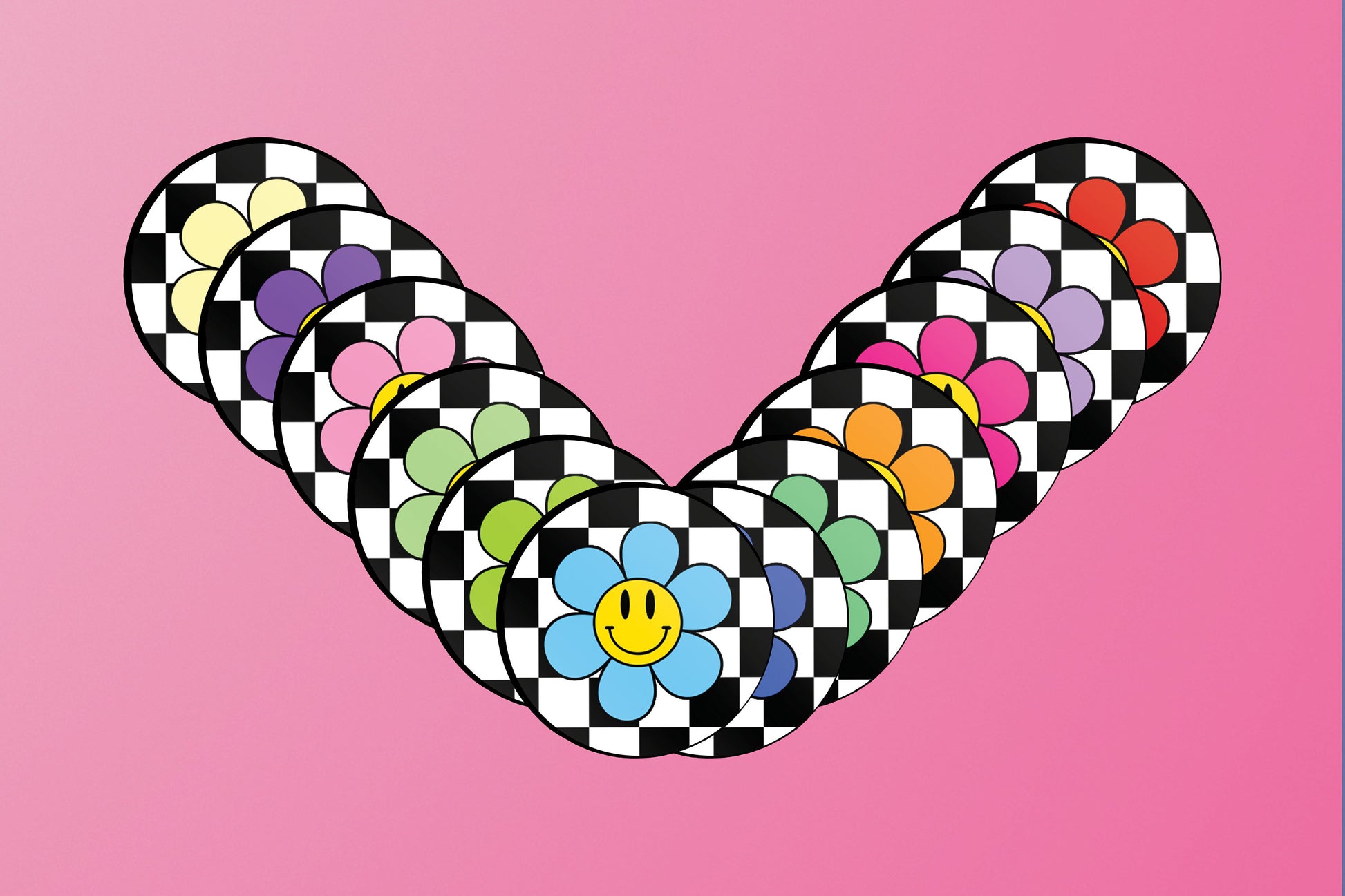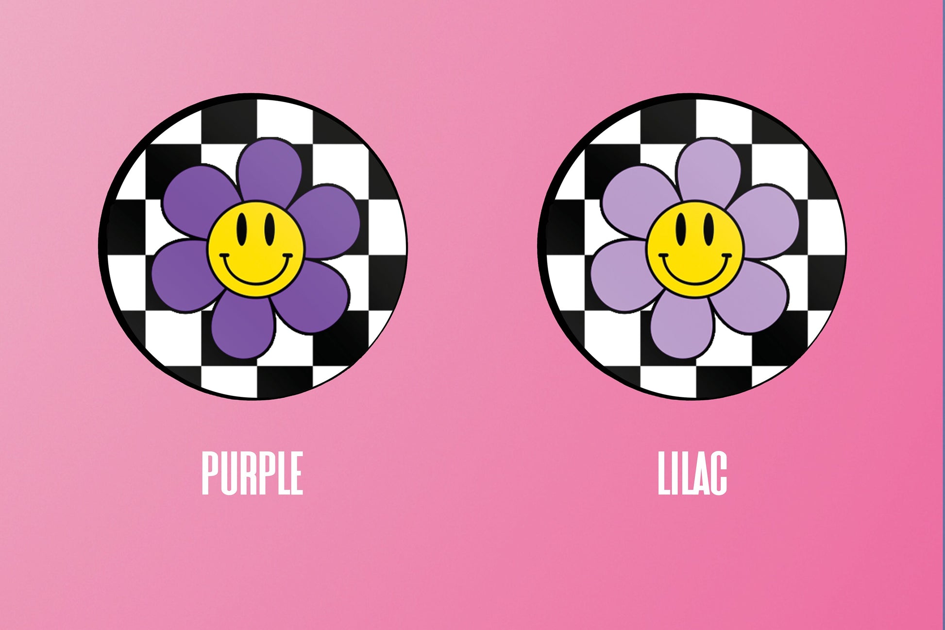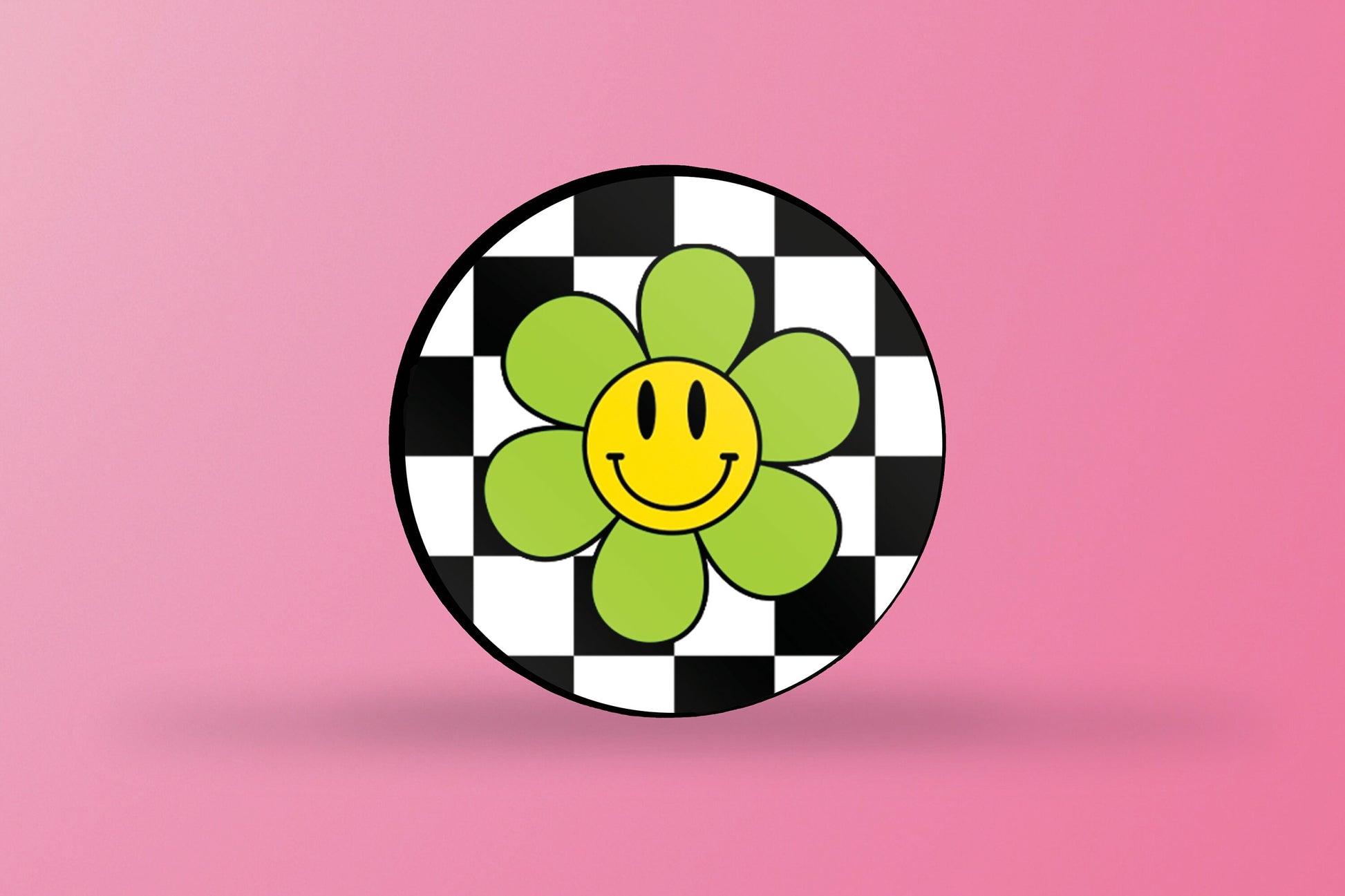 Introducing our unique adhesive phone folding grip! This stylish accessory features a retro smiley face flower design set against a black checked background, and is available in a range of colours to suit any personal style. Our grip is made from high-quality materials that are both durable and comfortable to hold, providing a reliable and convenient way to keep your phone secure.
