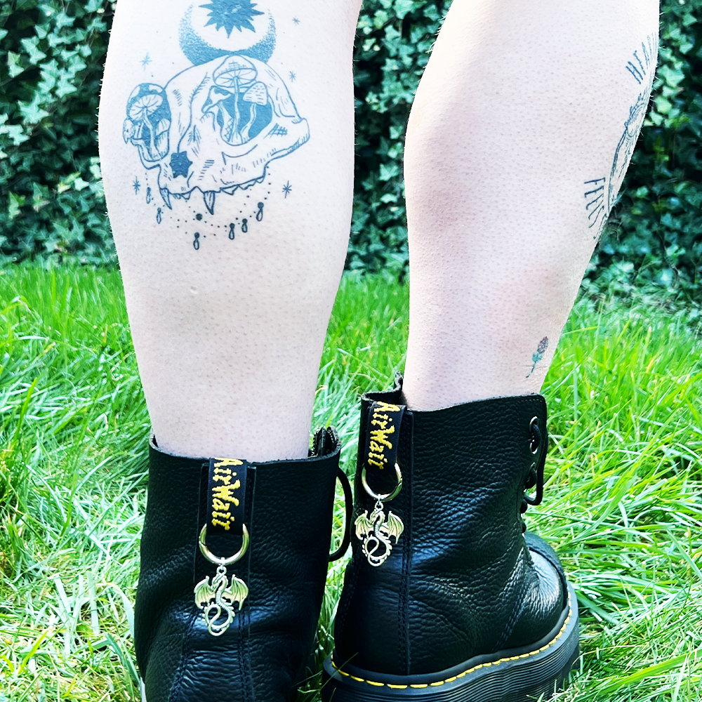 Designed to clip onto the tags of boots like Doc Martens, platforms, or combat styles, these charms are easy to attach and remove without damaging your shoes. Lightweight but durable, they’re built to travel with you—through festivals, nights out, or everyday adventures.