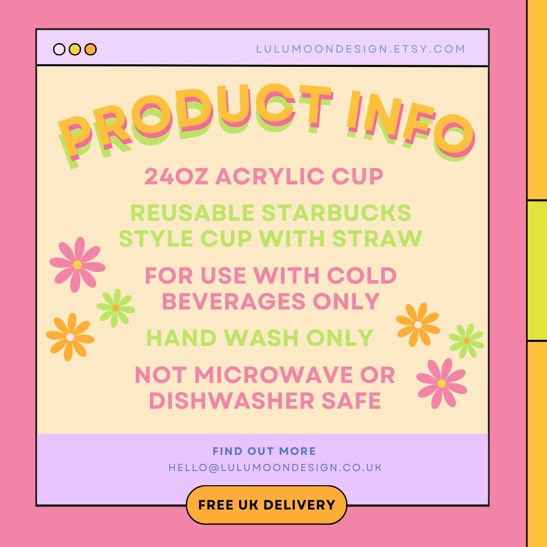 Reduce your plastic use with our range of durable 24oz tumblers. Complete with a lid and straw, these tumblers are ideal for cold drinks, reducing spills and making hydration easier than ever. We strongly advise against using these cups for hot beverages, as well as avoiding soaking, scrubbling, dishwashers and microwaves.