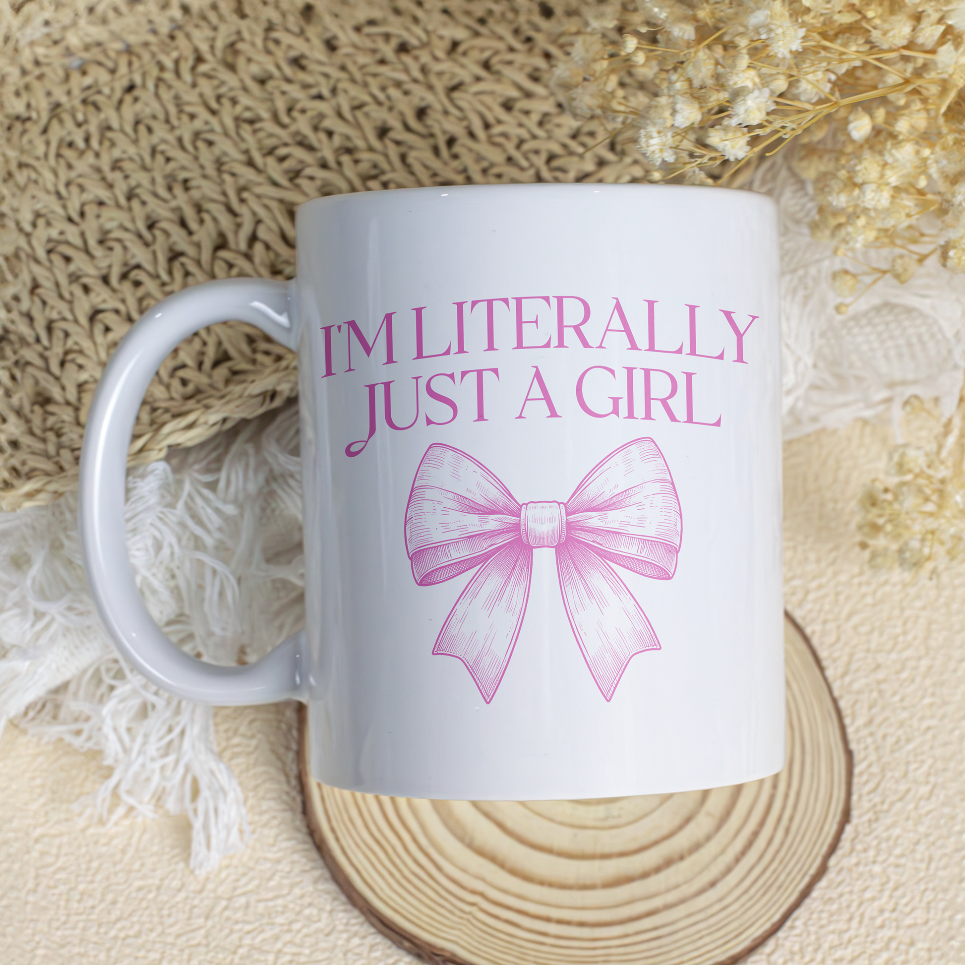 Unleash your inner girl power with our "I'm Literally Just A Girl" mug! This charming 11oz mug features a playful bow and coquette design, perfect for any girl who wants to make a statement. Sip your coffee or tea in style with this empowering mug.