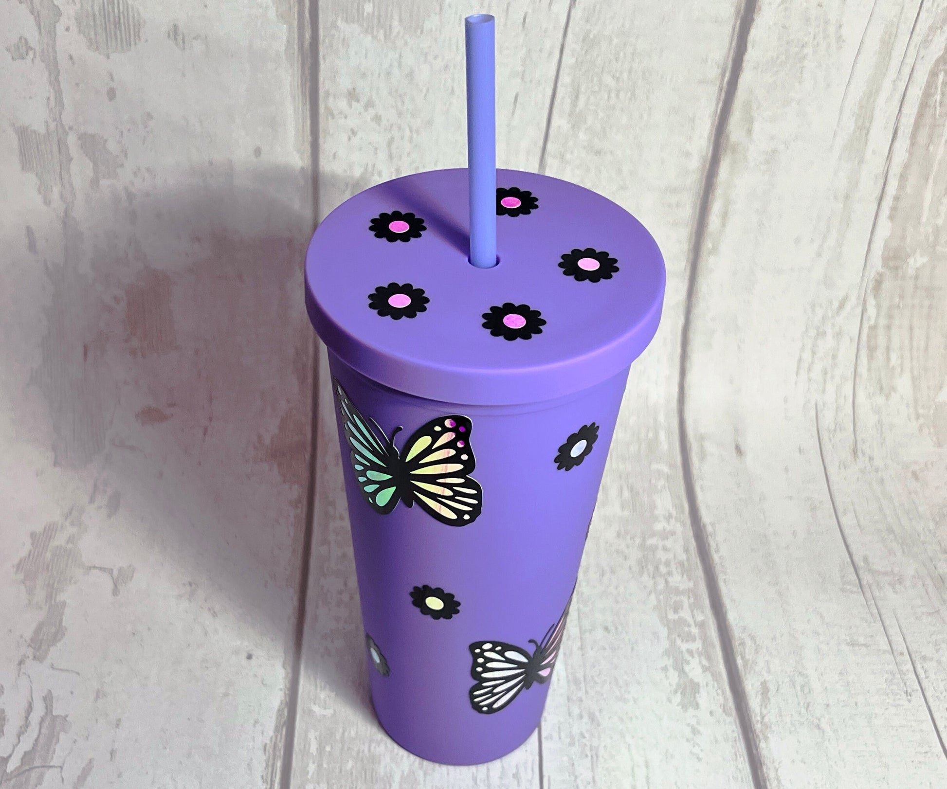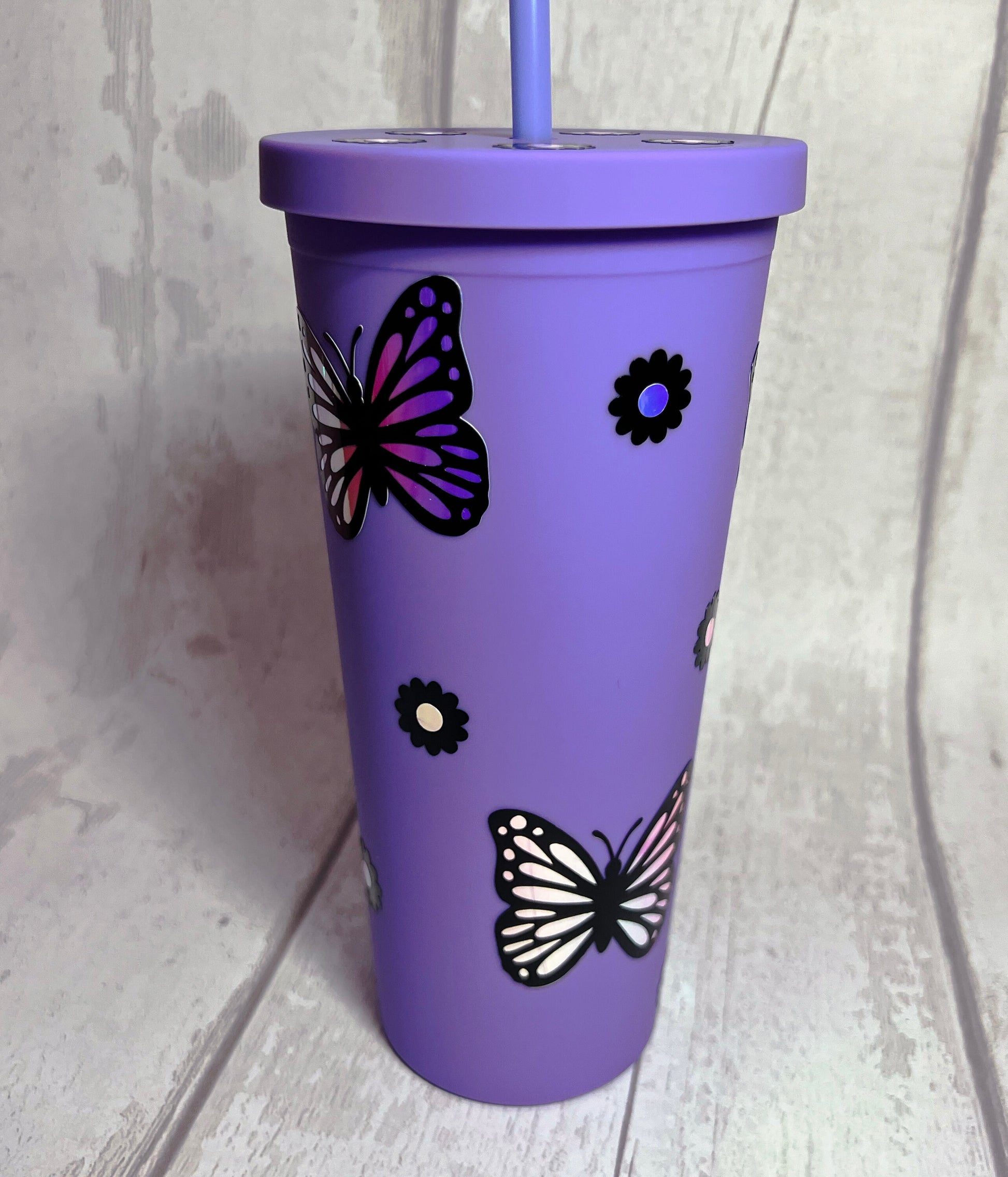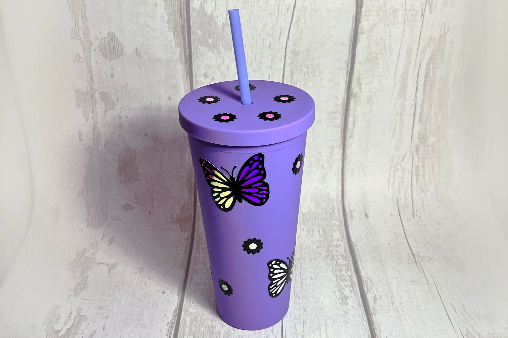 Whether you're treating yourself or looking for a unique gift for a loved one, this purple and opal floral butterfly cold cup is sure to impress. Order yours today and elevate your coffee experience to the next level!