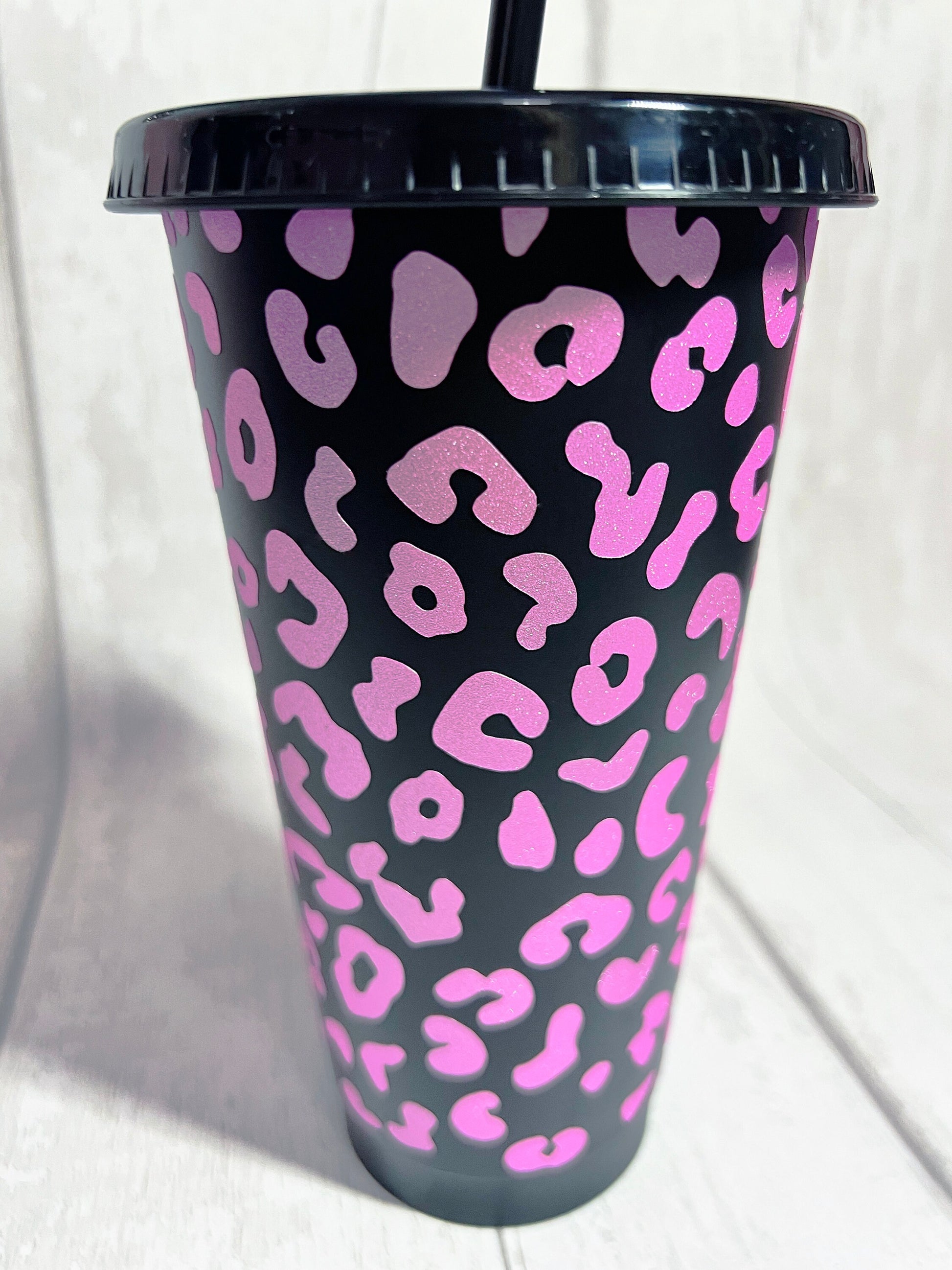 Whether you're treating yourself or looking for a stylish gift for a loved one, this black and pink glitter leopard print cold cup is sure to be a hit! Order yours today and add a touch of luxury to your coffee routine.