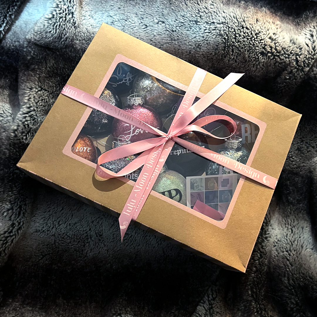 Handmade Taylor Swift eras Christmas baubles.